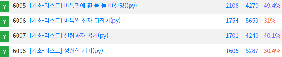 6098 : [๊ธฐ์ด-๋ฆฌ์คํธ] ์ฑ์คํ ๊ฐ๋ฏธ(py)