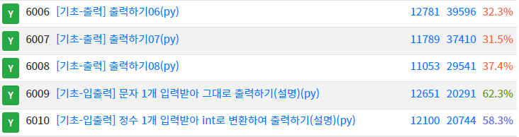 | 코드업 파이썬(Python) 기초 100제 - 6001번 ~ 6005번 (0) | 2021.06.14 |
