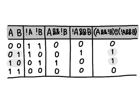 또는 위의 표와 같이 not과 and와 or을 이용하면 답을 구할 수 있다.