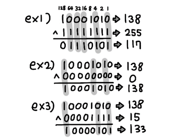 6062 : [기초-비트단위논리연산] 비트단위로 XOR 하여 출력하기(설명)(py)