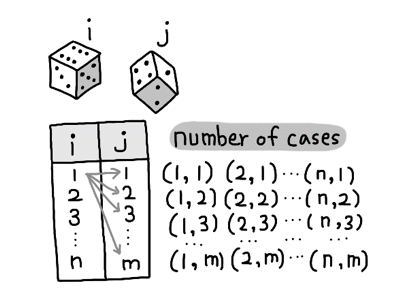1부터 n까지, 1부터 m까지 숫자가 적힌 서로 다른 주사위 2개를 던졌을 때,